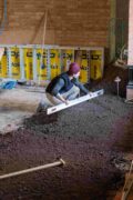 Unsere Stampflehmböden werden hauptsächlich durch die geologische Zusammensetzung der verwendeten Erde bestimmt. Für die Herstellung verwenden wir überwiegend Aushubmaterial aus der Baugrube oder der Region. Die Ursprünglichkeit unserer Arbeitsschritte erfordert hohes handwerkliches Können – nicht umsonst wird die Herstellung eines guten Stampflehmbodens als Königsdisziplin bezeichnet.