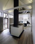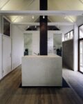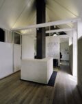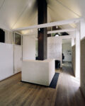 Nach den Renovierungsarbeiten im Atelier Gassner und dem Abbruch des ersten Stampfkachelofens entwarfen Ruth und Reinhard Gassner einen neuen Ofenkörper: ein heller Monolith aus Stampflehm mit klarer, zurückhaltender Formensprache. Trotz seiner massiven Hülle wirkt der Ofen beinahe schwerelos – er schwebt auf einer lediglich 5cm dünnen Eisenplatte knapp über dem Boden. Die fein abgestimmten Proportionen und die ruhige, betonähnliche Oberfläche verleihen dem Objekt eine stille Präsenz im Raum.