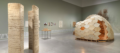 Die Lehminstallation „Verdichtete Erde“ bezieht sich auf die Versöhnungskapelle in Berlin, eines der frühesten Projekte von Martin Rauch. Die zweiteiligen, geschwungenen Monolithen mit glatten Innenflächen und vertikal strukturierten Außenflächen spiegeln die Innen- und Außenhaut der Kapelle wider. Die begehbare Installation macht die Textur des Lehms greifbar. Fast ein Vierteljahrhundert später zeugt sie von der Erneuerung und anhaltenden Attraktivität des europäischen Lehmbaus.