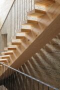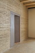 Während im einen Raum Baustellen geplant und koordiniert werden, entstehen nebenan vorgefertigte Bauteile, es wird an neuen Produktionstechniken getüftelt – und zwischendurch polieren Schüler:innen mit großer Hingabe ihre Dorodango-Kugeln. Planung, Produktion, Workshops und Forschung greifen hier ineinander, schaffen echte Synergien und fördern den Wissenstransfer. Lehm ist dabei in (fast) all seinen Formen erlebbar: als massive Stampflehmwand und Vorsatzschale, als Lehmputz, als Stampflehmboden und Schüttung, in der Kaseinspachtelung von Holzflächen oder als Holz-Lehm-Verbunddecke – eine Weiterentwicklung der Decke aus dem Projekt Hortus. Bevorzugt wurden lokale, diffusionsoffene Baumaterialien – aus Überzeugung und aus Respekt vor dem Ort.