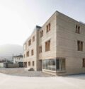 Das dreigeschossige Bürogebäude aus tragendem Stampflehm, das direkt an die Produktionshalle anschließt, ist in den letzten sechs Jahren mit viel Herzblut, Ausdauer und einer ordentlichen Portion Eigenleistung gewachsen. Unter seinem Dach bündelt das Gebäude die vielfältigen Aktivitäten der Lehm Ton Erde Baukunst GmbH.