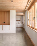 670m2 Stampflehmboden in Kombination mit Lehmputz sorgen er für ein ausgeglichenes Raumklima, da Lehm Feuchtigkeit aufnimmt und wieder abgibt. Dadurch entsteht eine natürliche Regulierung der Luftfeuchtigkeit, die das Wohlbefinden der Bewohnerinnen und Bewohner fördert. Gleichzeitig unterstreicht der Stampflehmboden die ökologische Haltung des Projekts: Er besteht aus natürlichen Materialien, weist eine geringe graue Energie auf und bringt durch seine haptische und visuelle Qualität eine warme, erdverbundene Atmosphäre in das Gebäude.
