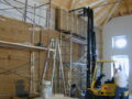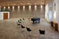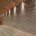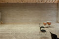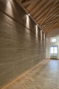 Im Innenraum spielen Stampflehmwände eine wichtige Rolle: Die vorgefertigten Elemente bilden eine massive, nicht tragende Innenhaut mit hervorragenden wärmespeichernden Eigenschaften. Die etwa 77m² große Lehmfläche sorgt für ein angenehmes Raumklima und verleihen dem Raum Materialauthentizität und Ruhe.
