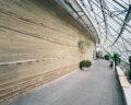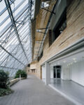 Energietechnisch wirkt die Wandelhalle als riesiger Wintergarten – ein konservatorischer Pufferraum. Noch während der Bauplanung wurde ein Wettbewerb zur künstlerischen Ausgestaltung der Halle durchgeführt, den Martin Rauch für sich entschied. Kunstwerk und funktionale Ergänzung der Architektur bilden eine perfekte Synthese: Die Stampflehmwand reguliert das Raumklima und bringt zugleich als ruhiges, erdverbundenes Element ein subtiles Gegengewicht zur technischen Ästhetik der Glas-Stahl-Konstruktion ein.