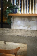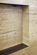 With this design, Lina Ghotmeh creates an atmosphere that is both natural and deeply human. It evokes the origin of all life and nourishment — the earth itself — brought back into the space in a compelling and tangible way through the use of rammed earth.