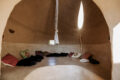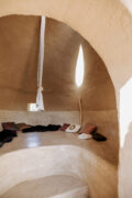 Licht, Geruch, Farbe, Temperatur und Materialität prägen unsere sinnliche Wahrnehmung. Der Raum für Geburt & Sinne ist ein begehbarer Körper aus Lehm – ein Ort, der erfahrbar macht, wie sehr Raum und Umgebung Geburt und Gesundheit beeinflussen. Das Objekt lädt ein, die Aufmerksamkeit auf die eigenen Sinne zu richten. Es ermöglicht vielfältige Gebärhaltungen, fördert Bewegung und nutzt die Schwerkraft als natürliche Unterstützung im Geburtsprozess: Stehen, Gehen, Sitzen, Knien, Hängen – der Raum folgt dem Körper.