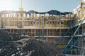 Die massive Südwand wurde vor Ort gestampft, ist zwischen 65 und 90cm stark und übernimmt statische, klimatische und raumbildende Funktionen. Ihre hohe Dichte in Kombination mit der offenporigen Oberfläche sorgt für eine exzellente Schalldämmung – so kann der Betrieb auch in unmittelbarer Nähe zu Wohngebäuden erfolgen. Gleichzeitig schützt die thermische Masse der Wand die Halle im Sommer vor Überhitzung.