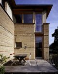Das Engagement der Bauherrschaft ermöglichte die Realisierung eines konsequent konzipierten Lehmhauses: Fundament und Kellerwände sind aus Beton, die Außenwände des Erdgeschosses aus Stampflehm – 63cm stark, hergestellt mit dem Aushubmaterial der Baustelle und vermischt mit Ziegelsplitt. Alle Innen- und Außenflächen dieser Mauern blieben unverputzt.
