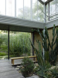 Anders als künstlich bemalte Kulissen in herkömmlichen Gehegen bildet die raue, schichtweise Struktur des Lehmbaus eine authentische, sinnlich erfahrbare Hintergrundebene für die aufwendig gestalteten Landschaftsräume im Inneren. Der Übergang zwischen gebautem Raum und Natur erscheint dabei fast durchlässig – eine Wand ohne Maßstab, deren feine Schichtungen und Farbnuancen im wechselnden Licht einen stillen Rhythmus erzeugen.
